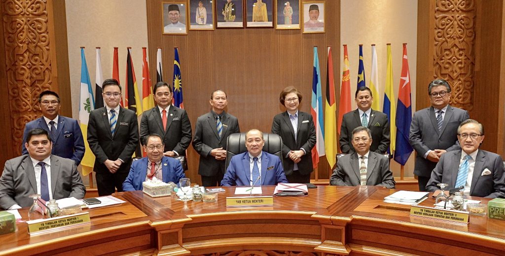 Hajiji (seated centre) with the new State Cabinet line-up before the meeting starts.