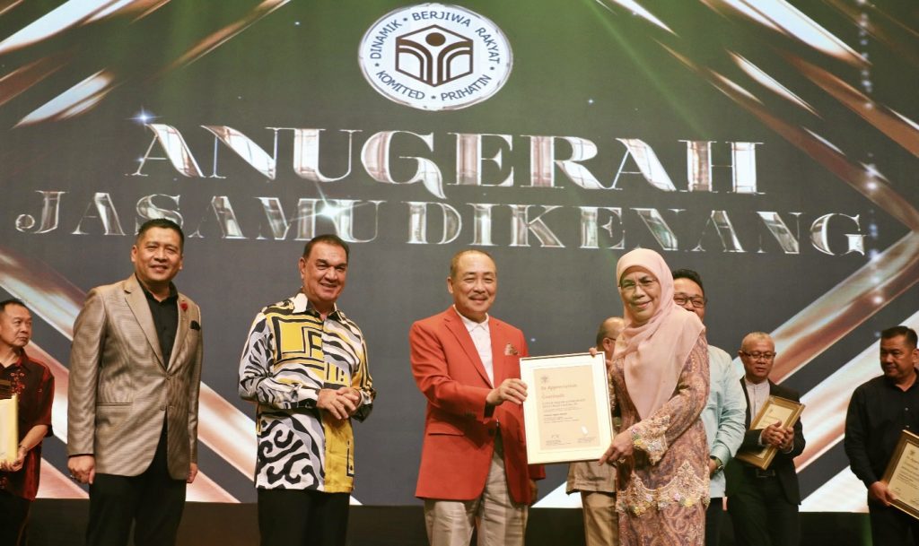 Hajiji menyampaikan anugerah perkhidmatan kepada seorang daripada penerima pada majlis tersebut.