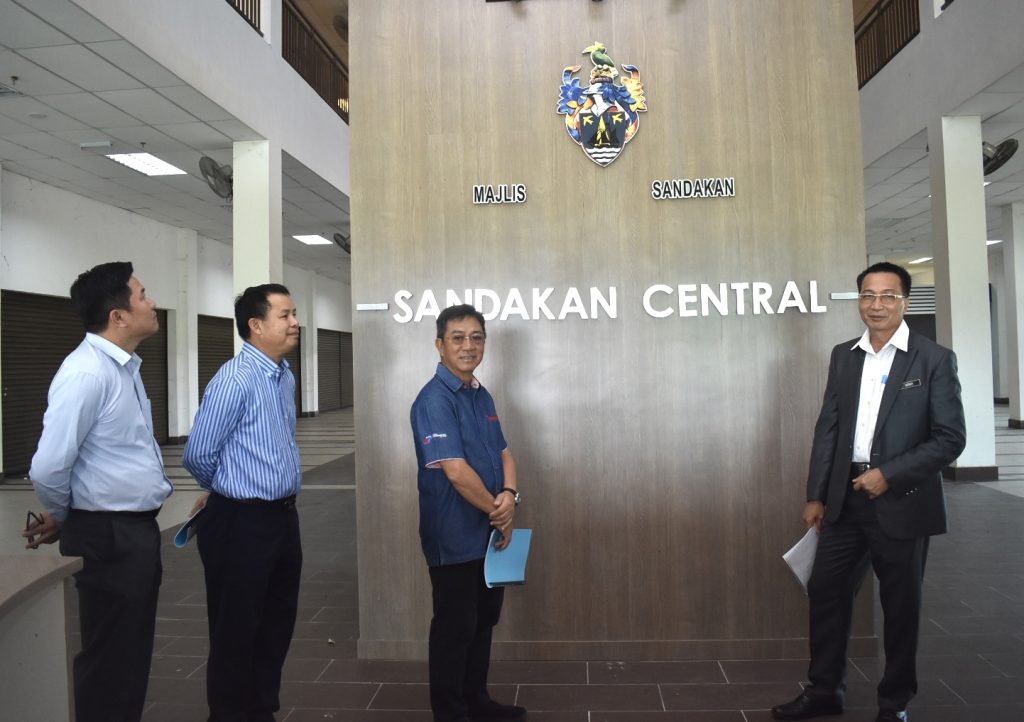 Dr. Joachim (tengah) melawat Terminal Bas Bersepadu Sandakan selepas selesai Upacara Mengangkat Sumpah para Ahli Majlis MPS hari ini dengan diiringi Presiden MPS baharu, Henry Idol (kanan), Dr. Jamili dan Jonnybone (kiri).