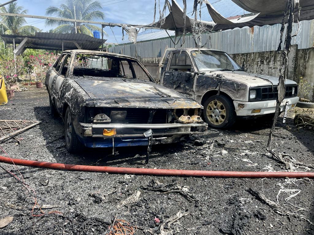 “Turut terbakar dua buah kenderaan iaitu Isuzu Pickup dan Mitsubishi Lancer. Operasi pemadaman menggunakan satu aliran dua pancutan sumber air dari jentera,” katanya.