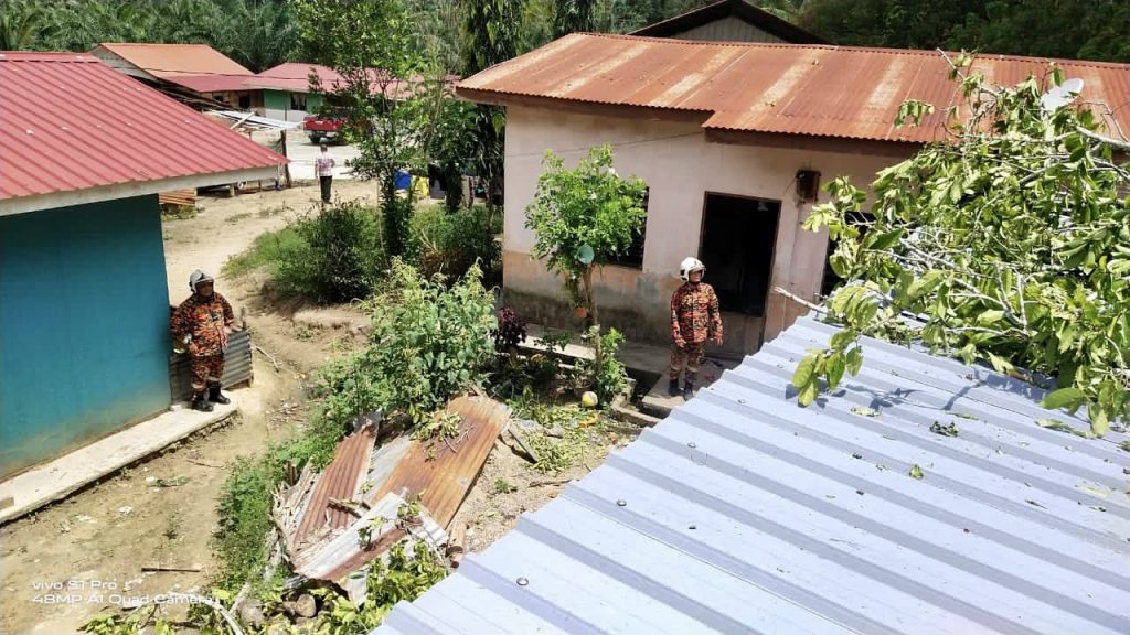 Setiba di lokasi, pasukan bomba mendapati pokok tumbang menghempap sebuah rumah berkeluasan 20×30 kaki persegi menyebabkan kerosakan 80 peratus pada bahagian atap dapur rumah.