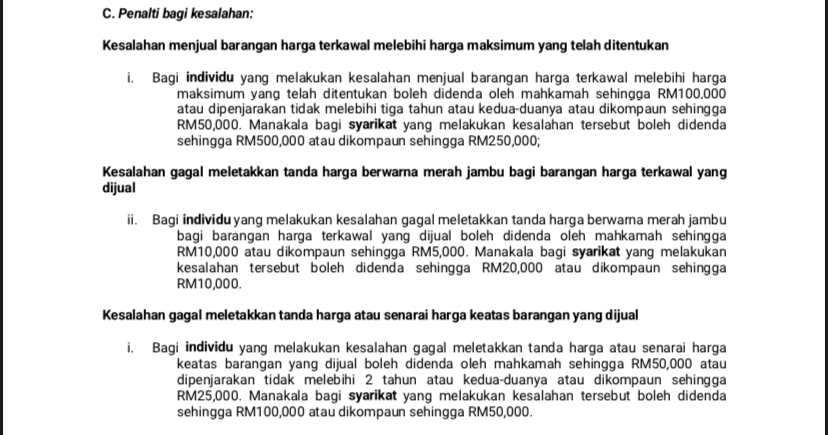 任何違法的交易者將根據《2011 年價格控制和反暴利法》被起訴,並可能受到以下處罰: