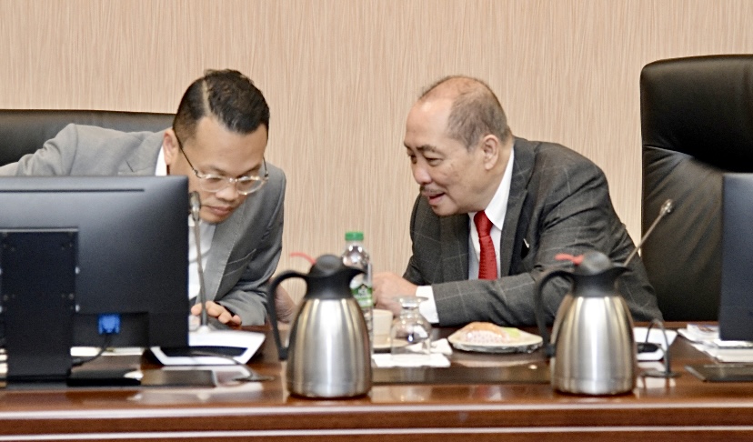 Hajiji dan Nik Nazmi (kiri) mempengerusikan bersama mesyuarat di Menara Kinabalu, Kota Kinabalu, hari ini.