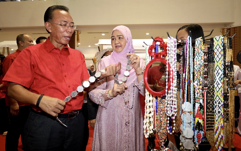 Juliah ketika melawat gerai pameran sempena Majlis Perasmian Program Wacana Ilmu Wanita Inspirasiku (WINS) KEMAS Negeri Sabah 2023 di Suria Sabah, Kota Kinabalu, hari ini.