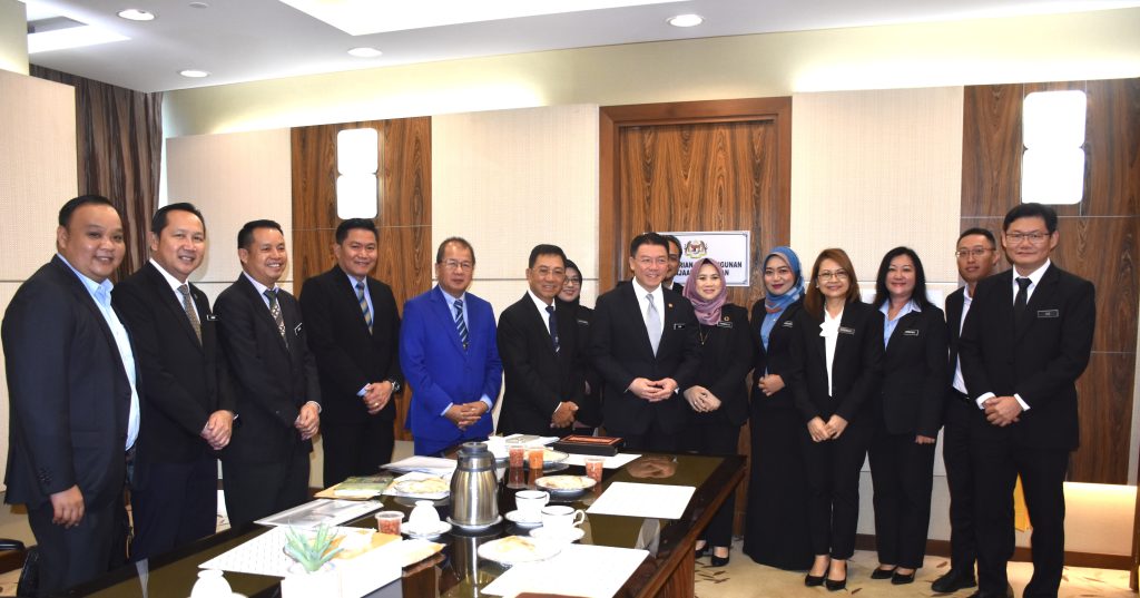Dr. Joachim (enam dari kiri), Nga (tengah) bergambar bersama dengan pegawai KKTP selepas mengadakan mesyuarat di pejabat KPKT hari ini.