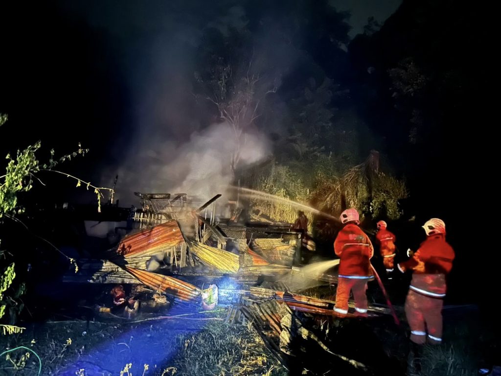 “Setiba ditempat kejadian yang terletak lima kilometer dari BBP itu, kita mendapati berlaku satu kebakaran melibatkan sebuah rumah jenis tidak kekal berukuran 20’x30’ dan turut terlibat sebuah kereta Jenis Toyota Corolla (Wegon) terbakar 100 peratus.