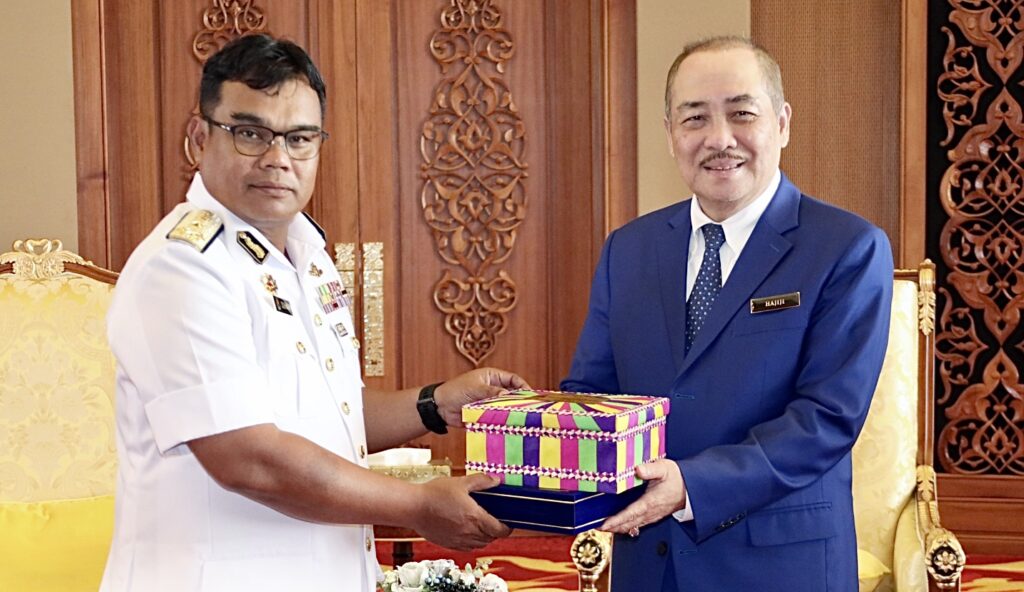 Hajiji turut menerima maklumat terkini mengenai keadaan maritim negeri inj semasa pertemuan dengan Pengarah Maritim Sabah dan Labuan, Laksamana Pertama Maritim Che Engku Suhaimi Che Engku Daik.