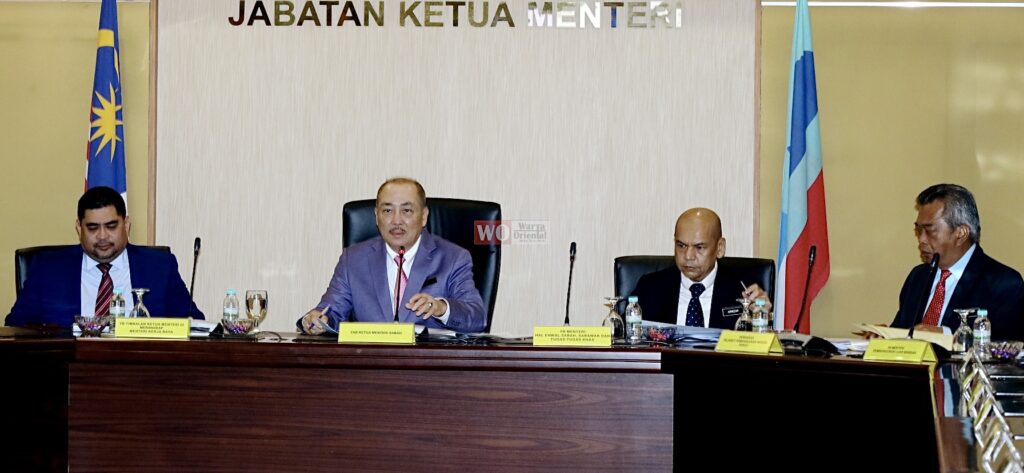 Hajiji flanked by Minister in the Prime Minister’s Department Datuk Armizan Mohd Ali (right) and Deputy Chief Minister III cum Works Minister Datuk Ir Shahelmey Yahya at the MTPNg meeting.
