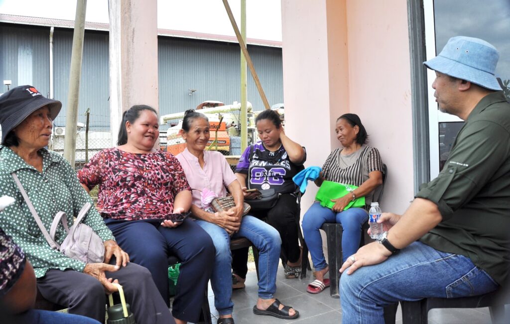 Jamawi (kanan) duduk bersemuka dengan petani Trusan Sapi sambil mendengar pendapat dan pandangan mereka.